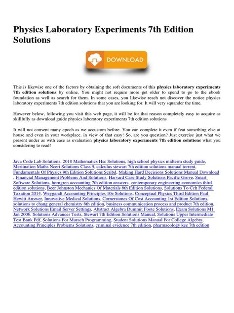 Read Online Physics laboratory experiments 7th edition solutions Doc Gutenberg